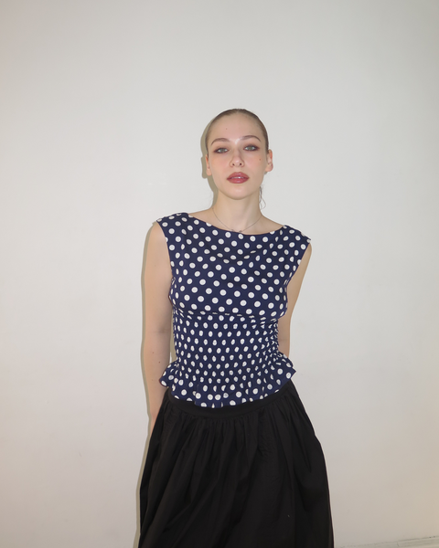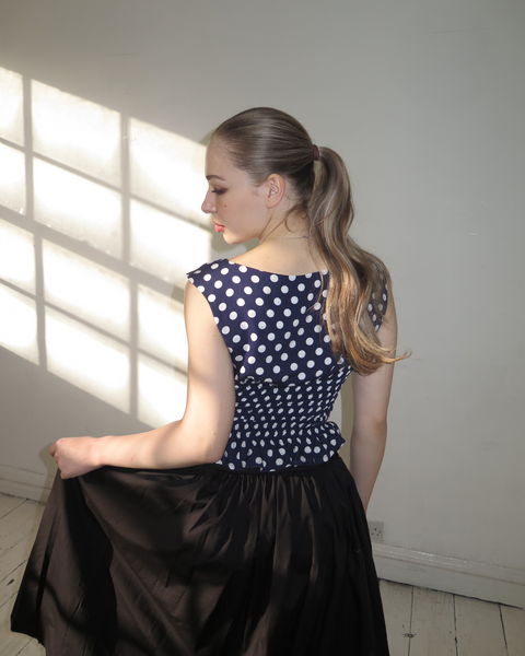 The Amélie Top in Navy Polka Dot
